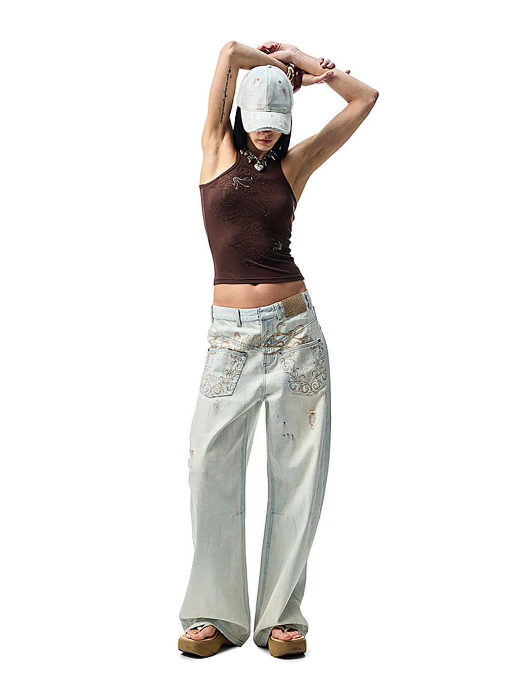 [1JINN STUDIO] Floral Rhinestone Camisole Top