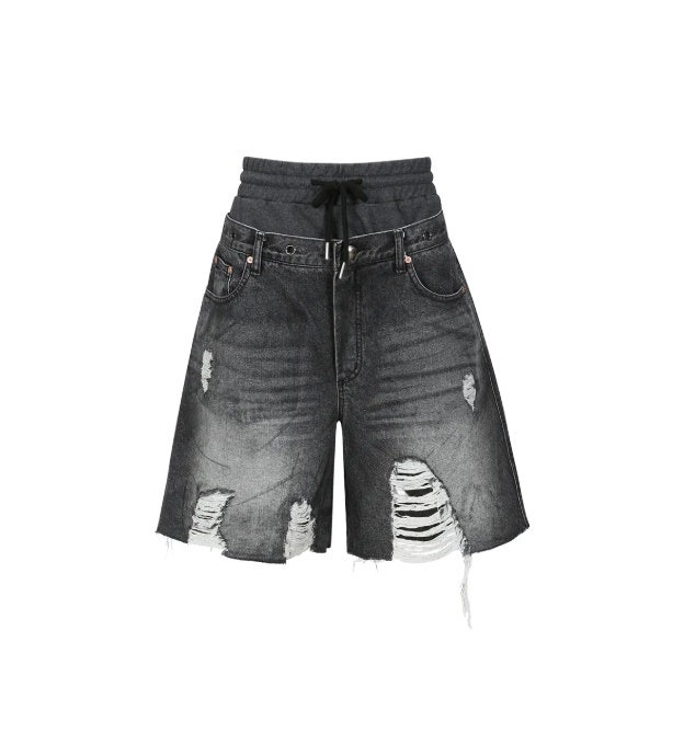 โ๏ธ andersson bell : DENNY SWEAT WAIST DAMAGED SHORTS apa718w(WASHED BLACK)